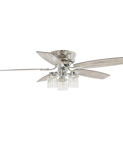 52″ Bangatore Traditional Chrome Flush Mount Reversible Ceiling Fan with Lighting and Remote Control