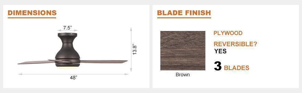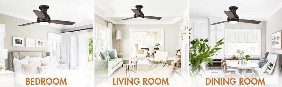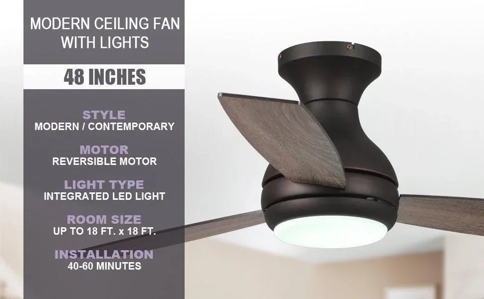 The contemporary fan comes with LED light covered in oil-rubbed bronze, the appearance is stylish and concise, and the overall structure design is compact, which will keep the home interior current and inspired. This indoor ceiling fan is designed to be used in rooms with low ceilings. Its measure is 48 in. x 48 in. x 14 in. The low-profile housing fits flush to the ceiling; ideal fan for the living room, bedroom, or children’s room.