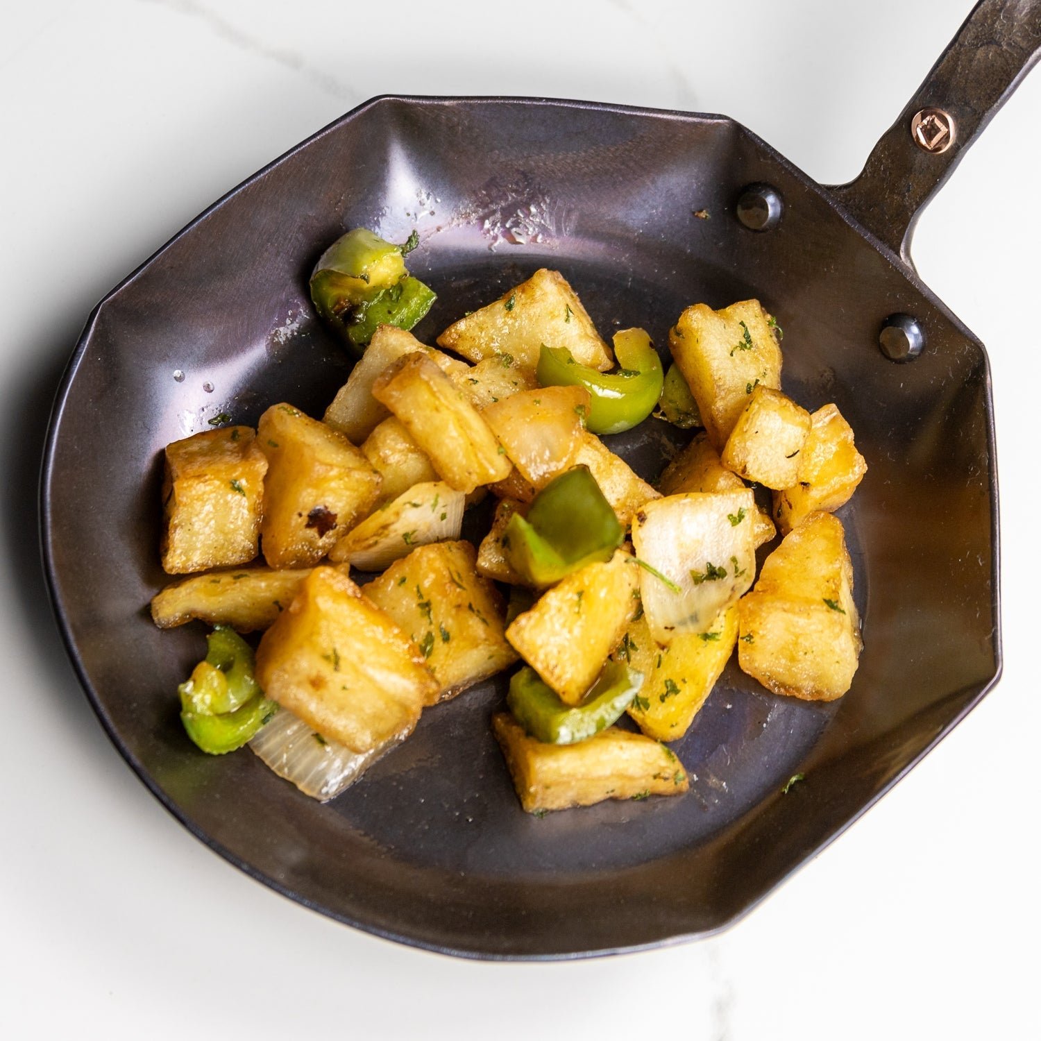 Our 8” Hand forged hybrid skillet is the perfect size for frying up a couple of eggs, preparing a perfectly shaped omelet, or a single serving of bacon or sausage. If you are cooking for one, it also works great for searing small proteins and sautéing veggies for a side dish. This pan heats quickly and is simple to clean and maintain.