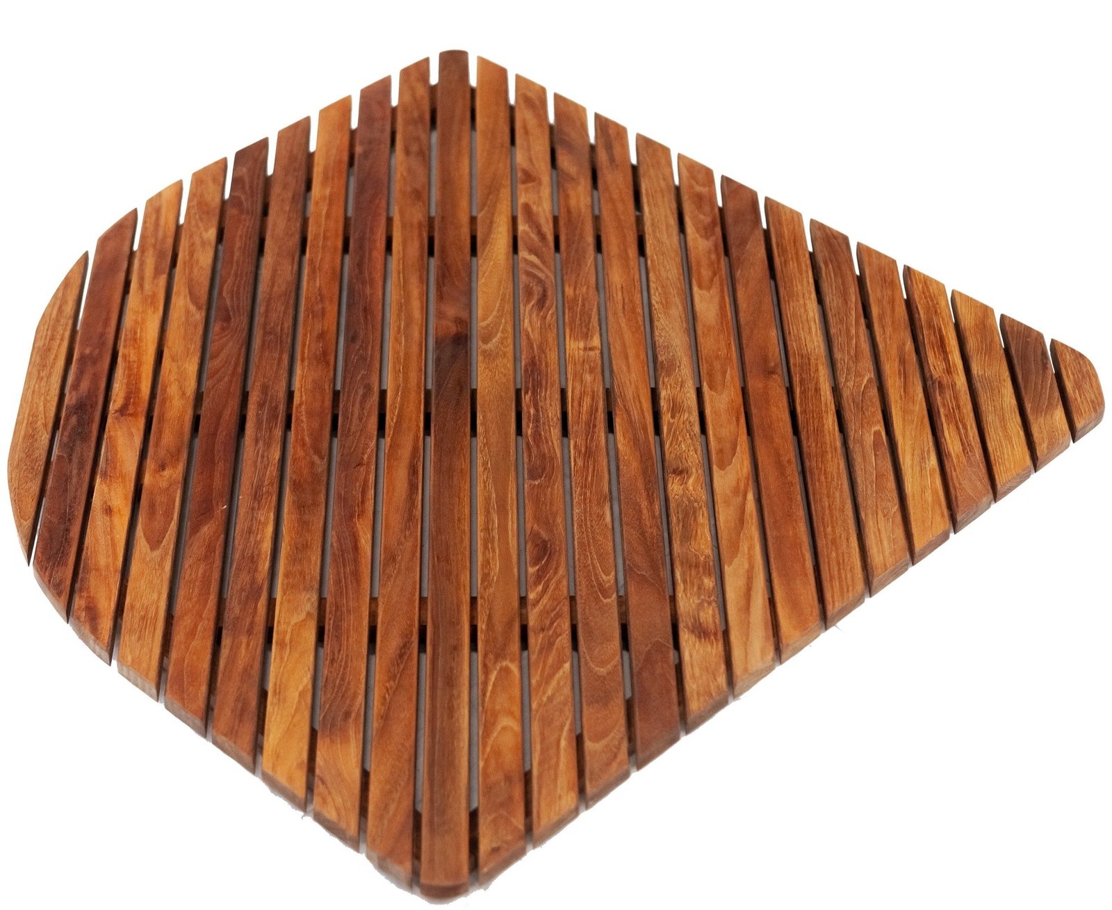 Bring spa-like style to your bathroom or outdoor shower with this teak shower mat. Made in Indonesia from solid teak wood in a rich brown stain, this mat strikes a semi square shape with a rounded edge. Its planked build guides water into its ridges and out so water won’t pool, while its smooth, yet non-slip finish gives you a stable footing while your rinsing off.