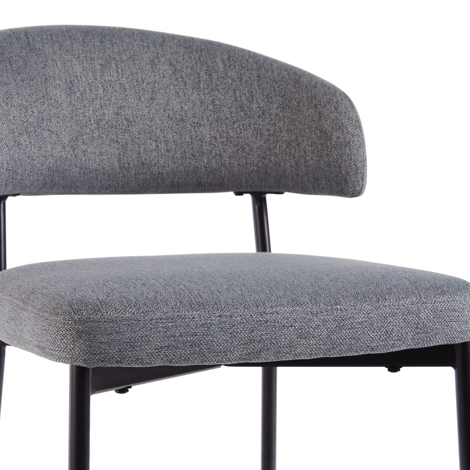 This set of two upholstered bar stools is just the modern look needed to complete your kitchen or bar area. The stylish, curved back design makes a statement, but it’s not just for looks. Meals will be more comfortable and less rushed when you enjoy the comfortable shape and high-quality padded foam seating. The durable, powder coated steel base ensures your chairs stand up to everyday use, and the high-performance fabric is easy to clean. Adjustable foot levelers make it easy to balance your chairs. Quick and easy setup allows you to start hosting guests right away.