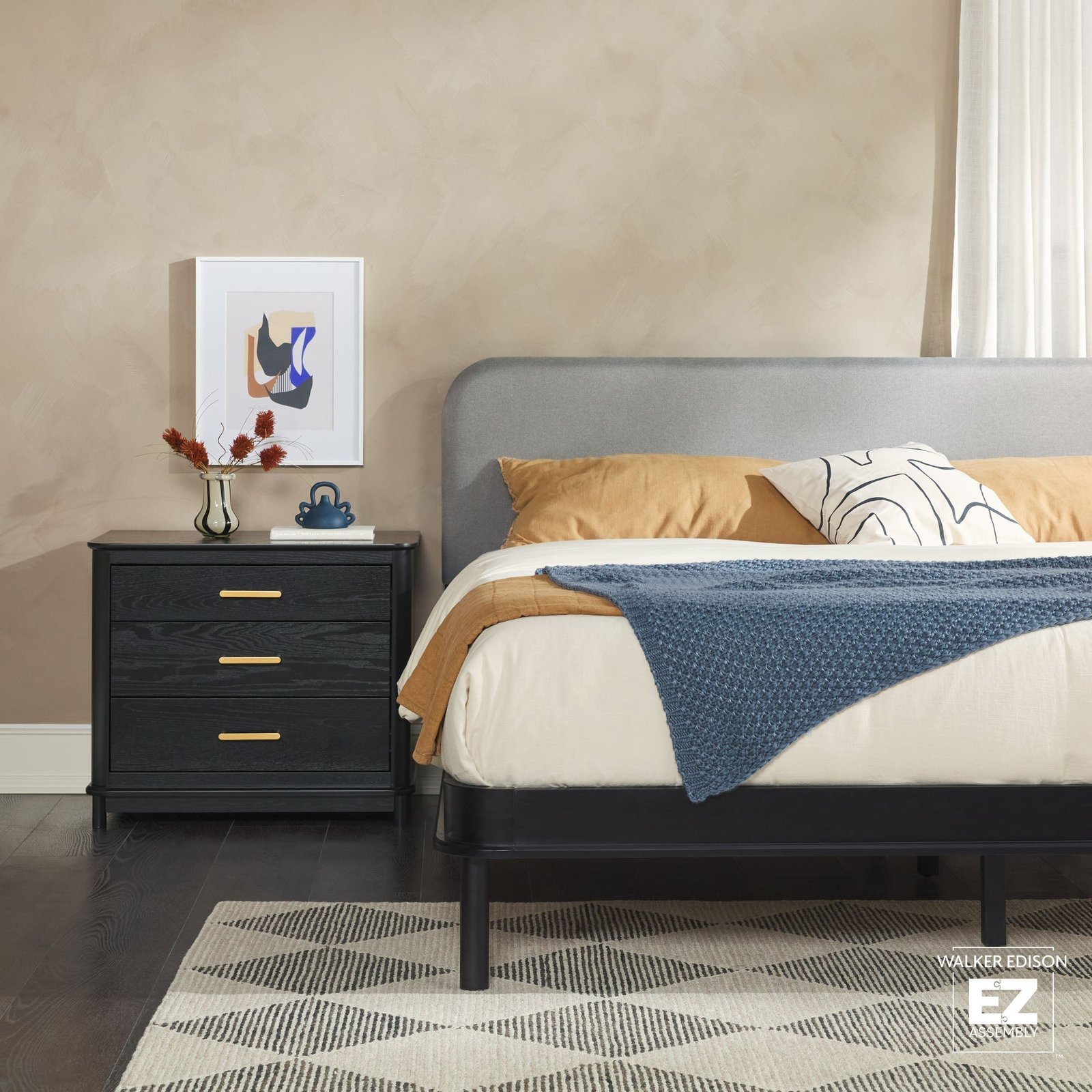 You don’t need dreamland when your waking hours are this stylish and comfortable. This contemporary solid wood bed seamlessly blends upholstery and wood materials for a unique design that’ll make your wind-down time more enjoyable than ever before. A curved headboard with gray upholstery brings a cozy, textural element to your bedroom and perfectly balances the natural wood grain. You can Say Goodbye to Frustration during assembly, too: the headboard comes fully assembled. The curved design carries into the footboard, creating an elevated vibe that looks more expensive than it is (but that can be our little secret). Best of all, there’s no need for a box spring with this simple and convenient platform bed.