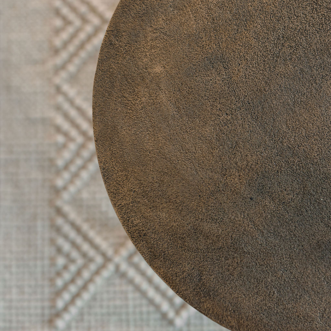 Versatile in size, it serves beautifully as a side table in your living room, a chic bedside companion, or a striking accent piece in a hallway or entryway. Made from durable aluminum and hand-finished for a unique artisanal touch, this table seamlessly blends elegance with practicality.