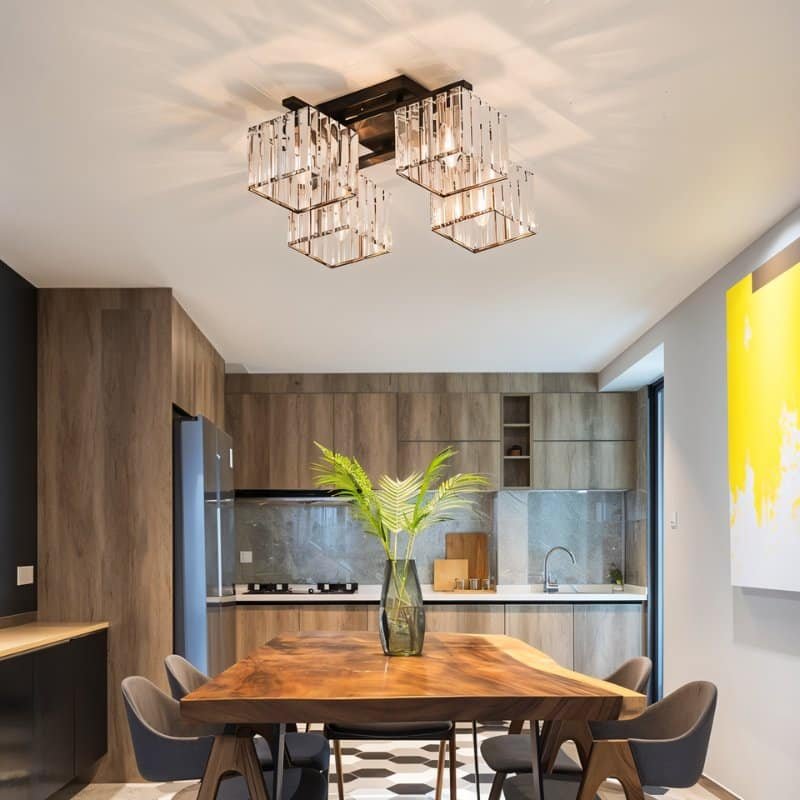 The Arunah Ceiling Light has modern and luxurious design elements that add a sense of an aesthetic and upscale feel to any environment. It features an iron construction with a gold or black finish and crystal lampshades organized in various geometric patterns that shimmer in the light giving it a harmonious and opulent appearance while enacting a dynamic aspect in all spaces. Arunah is a brilliant addition to any modern home and is perfect for complementing any setting.