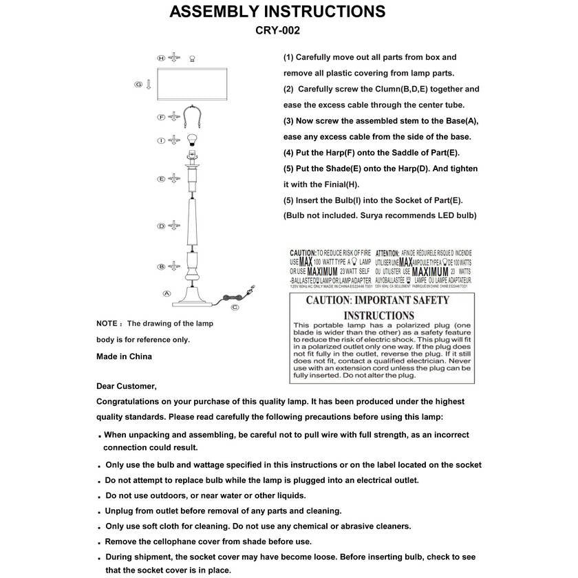 • Colors: Body: Brown; Base: Brown; Shade (Outside): Beige; Shade (Inside): White; Finial: Brown; Harp: Metallic – Nickel; Cord: Translucent