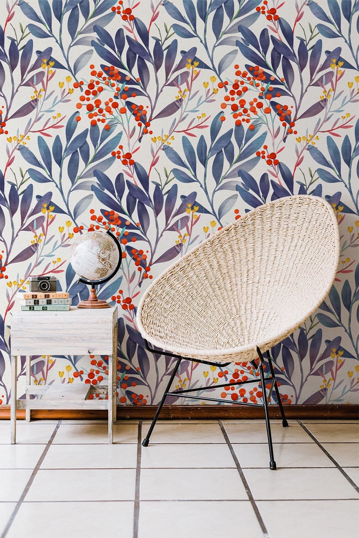 Be the first to review “Berries and Blue Leaves Wallpaper”