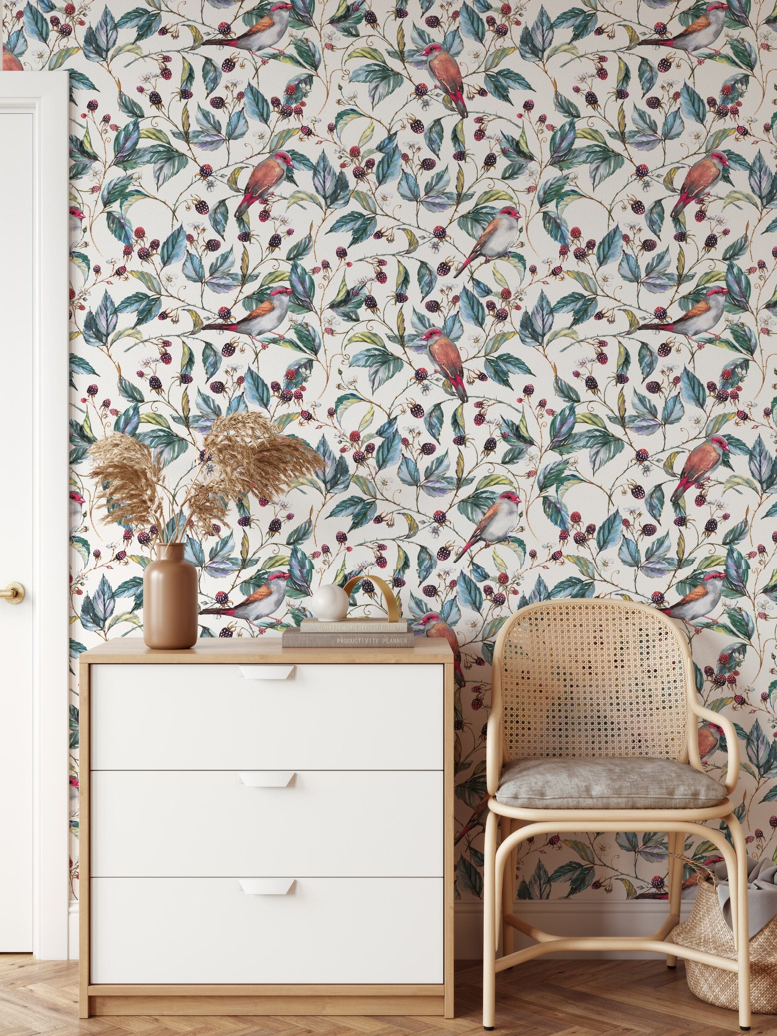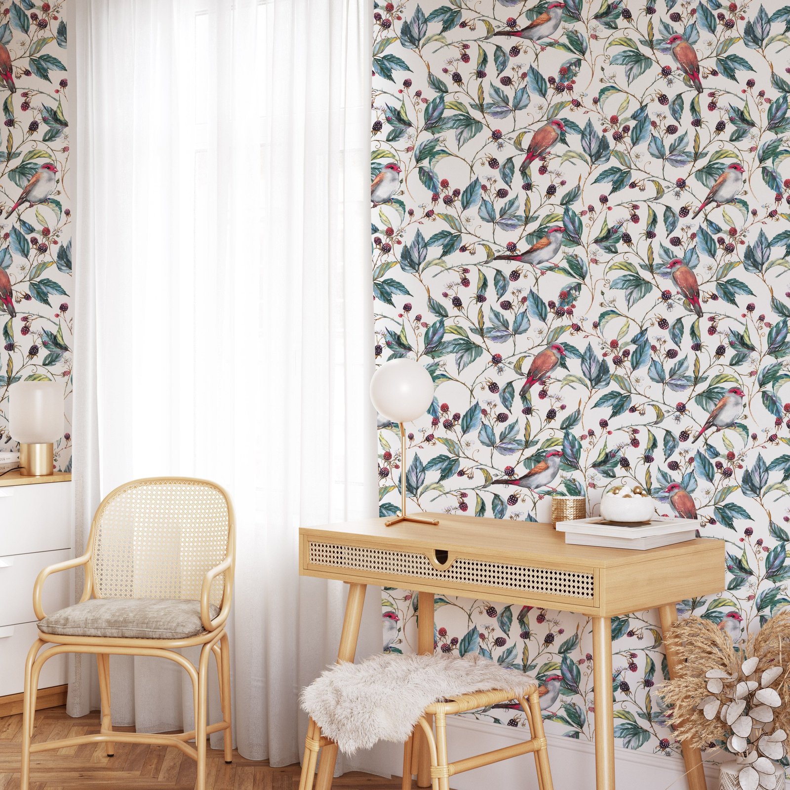 Transform your walls with our stunning Bird and Berry Peel and Stick Wallpaper. The lively bird and berry design will add a touch of nature to any room, while the easy to use peel and stick feature makes installation a breeze. Make your walls stand out now!