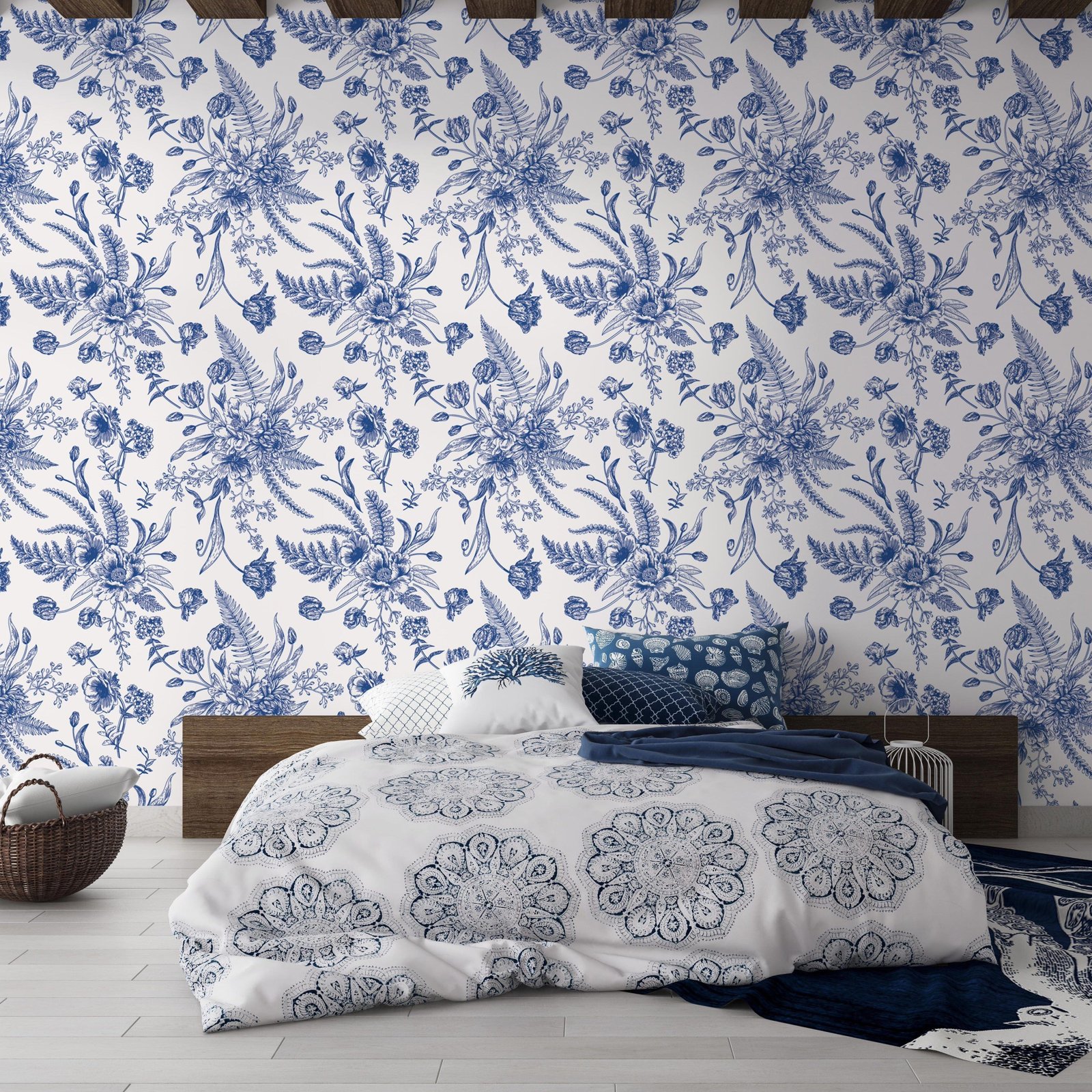 Introduce an elegant touch to your space with our Blue Toile Wallpaper Peel and Stick. This traditional design features a beautiful fern toile pattern, making it a great way to add an instant update to any room. Our Peel and Stick solution requires no adhesive, making it an effortless and mess-free way to transform your space.