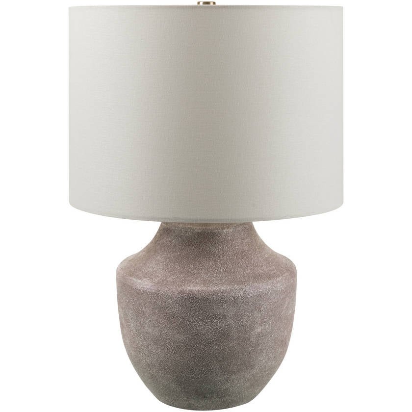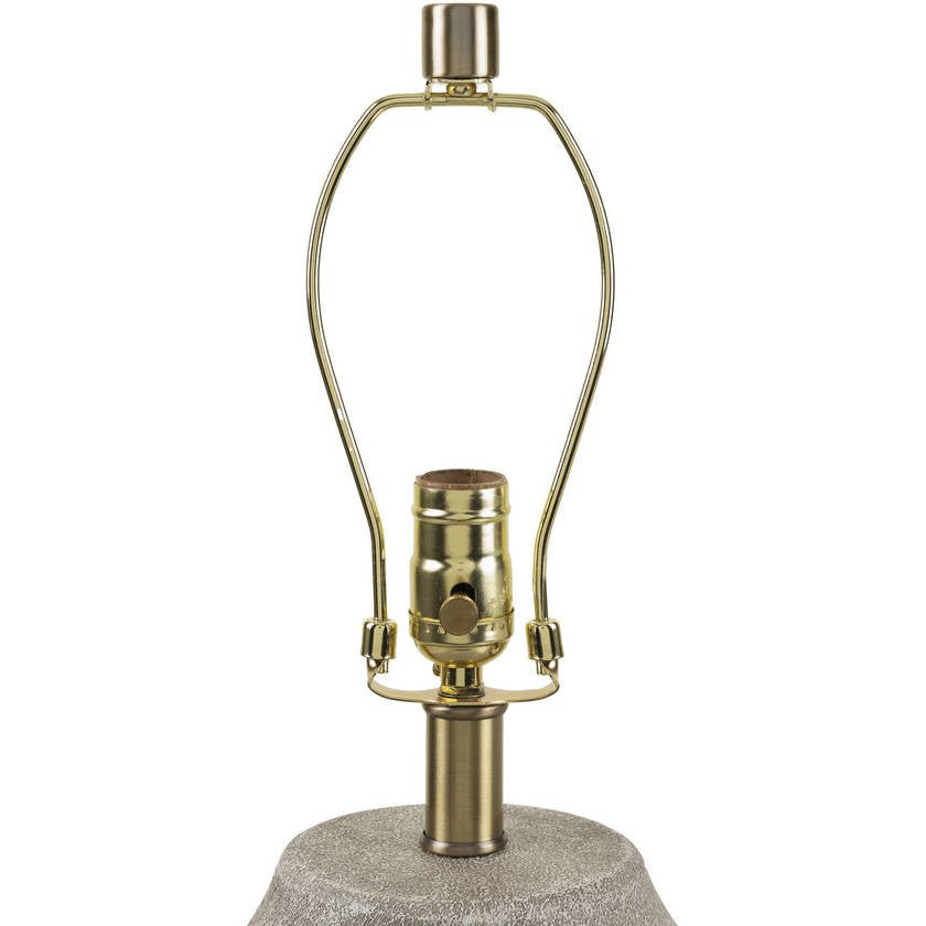 - Colors: Body: Light Gray; Shade: Beige; Finial: Metallic – Brass; Harp: Metallic – Brass; Cord: Translucent