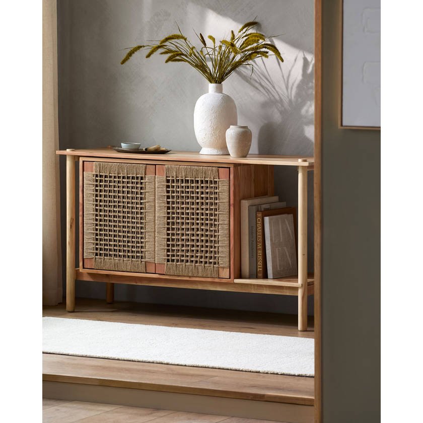 Introducing the Brandy Cabinet, a stunning embodiment of Scandinavian Modern style that infuses sophistication into any space. Its top is meticulously designed with Acacia and Paper, while its sturdy base is crafted from Acacia for added durability. This elegant piece has been skillfully manufactured in India and promises to add a touch of class to your decor. For maintenance, simply wipe it clean with a dry cloth to keep its charm intact. It’s advised to avoid harsh cleaners as they may compromise the beautiful finish of this exquisite cabinet. Enhance your living space with the Brandy Cabinet – it’s not just furniture, it’s art!