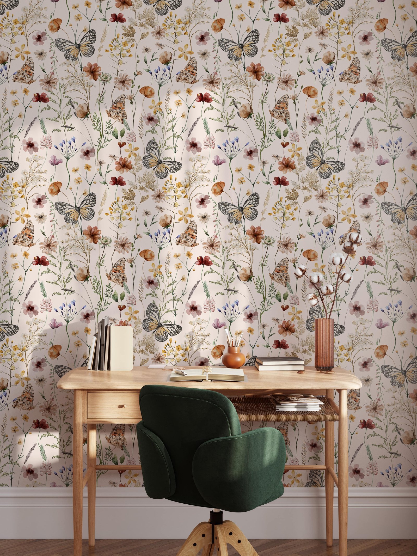Bring life and color to your walls with Butterfly Background Wallpaper. This beautiful wallpaper features a striking watercolor design of butterflies and flowers that will bring a touch of botanical garden to any interior space.