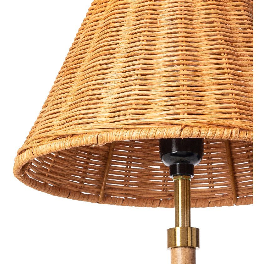 - Body: Metal; Base: Metal; Shade (Outside): Rattan; Shade (Inside): Rattan