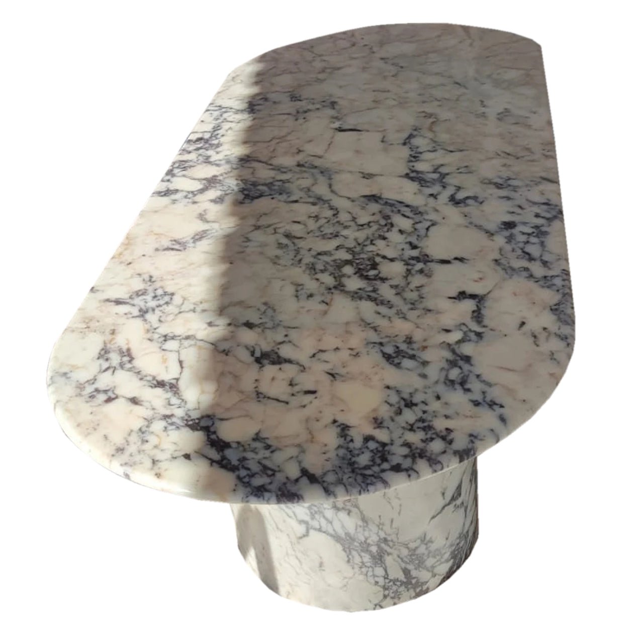 Calacatta Viola Marble Oval Dining Table with C Shape Marble Legs Polished
