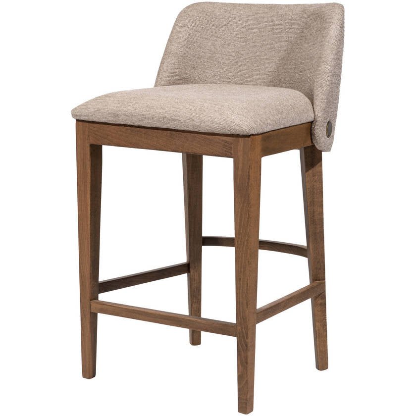 Inspired by modern European aesthetics, this counter stool merges functionality with graceful design. The gently curved backrest offers a sense of elegance while providing extra support, and the subtle button detail at the back adds just the right touch of sophistication. The wheat wood finish gives a natural warmth that makes any room feel welcoming, while the medium brown upholstery creates an inviting contrast without overwhelming your space.
