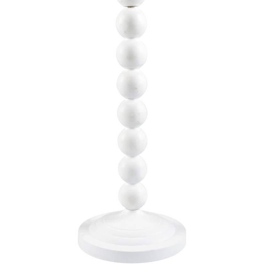 - Colors: Body: White; Base: White; Shade (Outside): Beige; Shade (Inside): White; Finial: White; Harp: Metallic – Brass; Cord: Translucent