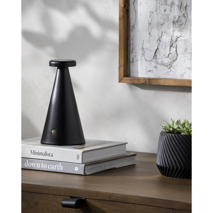 Introducing the Charlbury Accent Table Lamp. Embodying a Minimalist Modern style, this unique lamp is sure to become the focal point in any room. Crafted from sturdy iron with a sleek metal shade, it stands at 8 inches tall – a perfect addition to your desk or bedside table. Not only does it provide efficient lighting for your space, but its striking design also adds an edgy aesthetic touch that complements contemporary decor. The Charlbury lamp is easy to maintain; simply wipe clean with a dry cloth to keep it looking its best and remember to avoid harsh cleaners that could potentially damage the finish. Illuminate your surroundings in style with the Charlbury Accent Table Lamp.