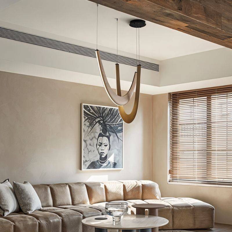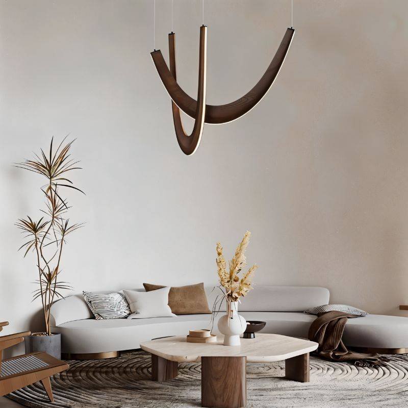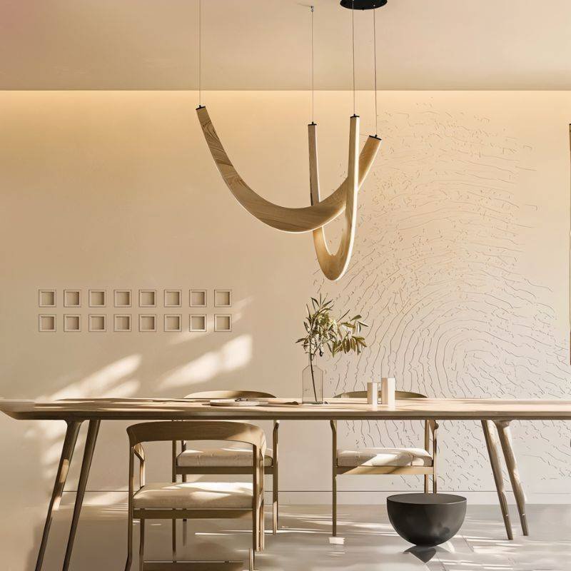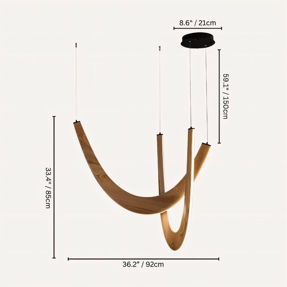The Chime chandelier is a beautifully crafted light fixture made from durable metal and wood, blending industrial and natural styles. Its sleek metal arms support intricate wooden accents, creating a striking contrast. Perfect for larger spaces like dining rooms, living areas, or foyers, it offers the ideal diffusion of light. This versatile piece adds both sophistication and rustic charm to any room.