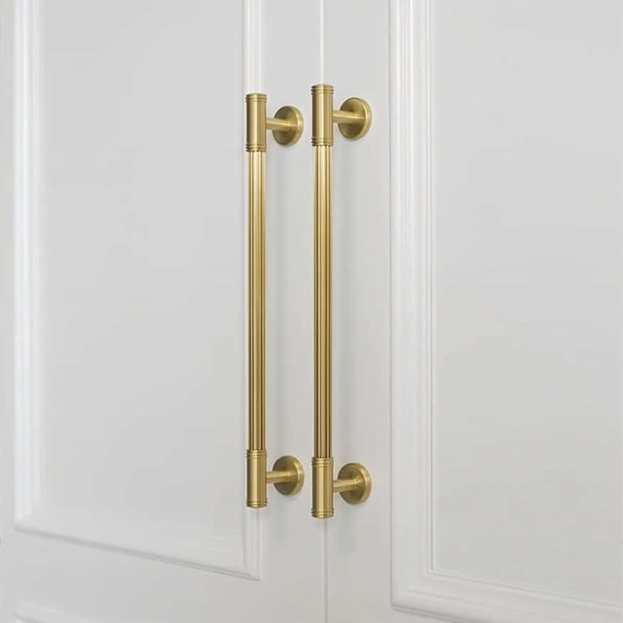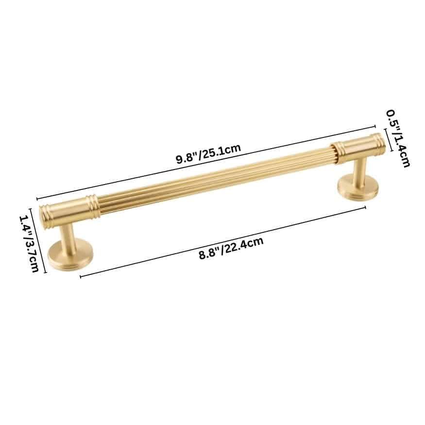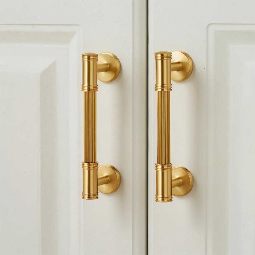 The Cilia Pull Bar features a sleek brass design with grooved detailing, creating a sophisticated and timeless appeal. Its cylindrical structure and decorative accents balance the design, making it a perfect choice for cabinets, wardrobes, and doors in modern and classic interiors.