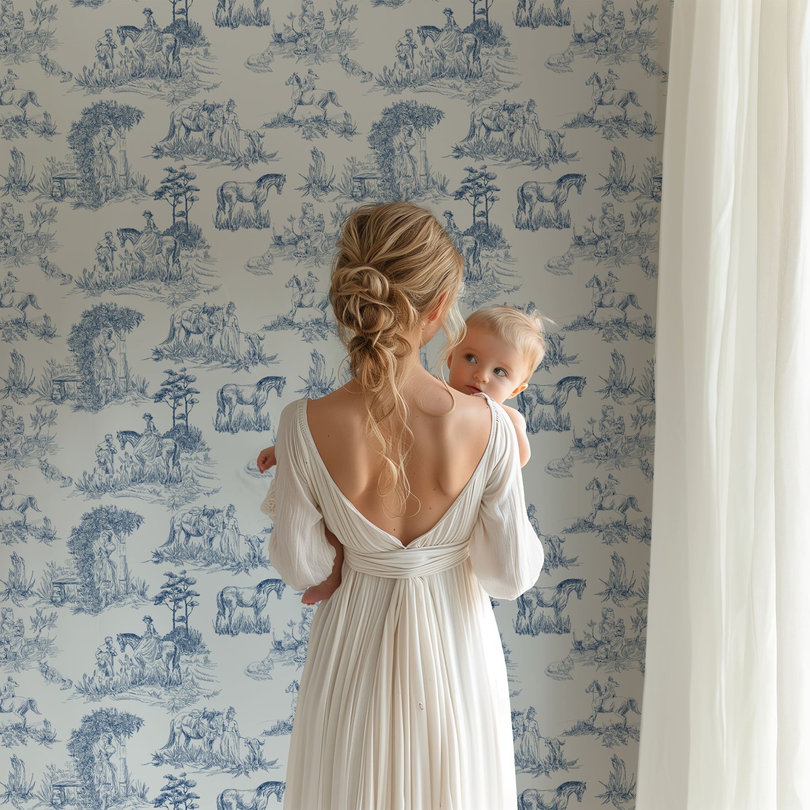 Step into a world of French aristocratic charm with our Classic Blue French Toile Wallpaper. Featuring hand-drawn equestrian scenes, refined countryside vignettes, and 18th-century pastoral artistry, this high-end designer wallpaper evokes classic sophistication and old-world European elegance. The deep French blue detailing on a crisp white backdrop brings an exquisite, museum-worthy aesthetic to any space.