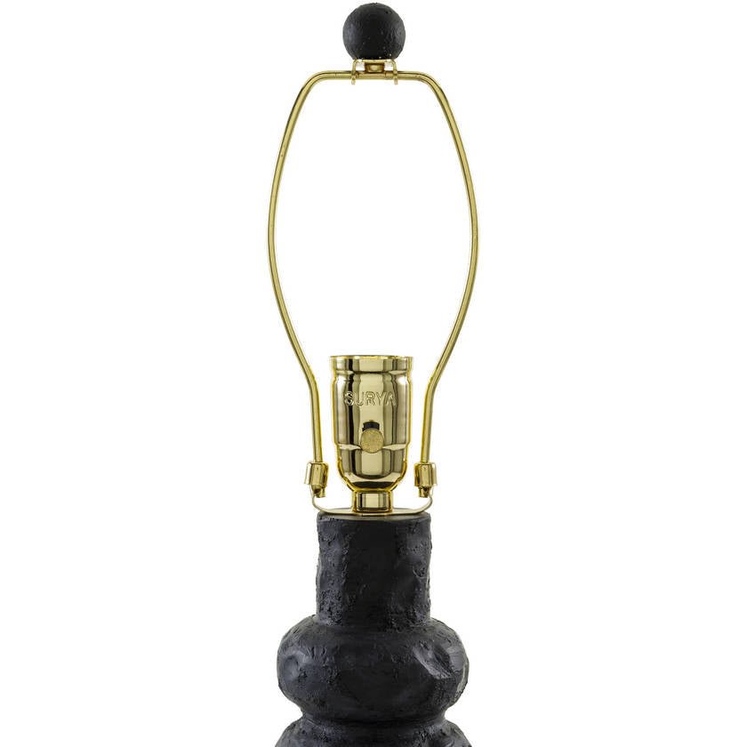 • Colors: Body: Black; Shade: Tan; Finial: Black; Harp: Metallic – Gold; Cord: Translucent