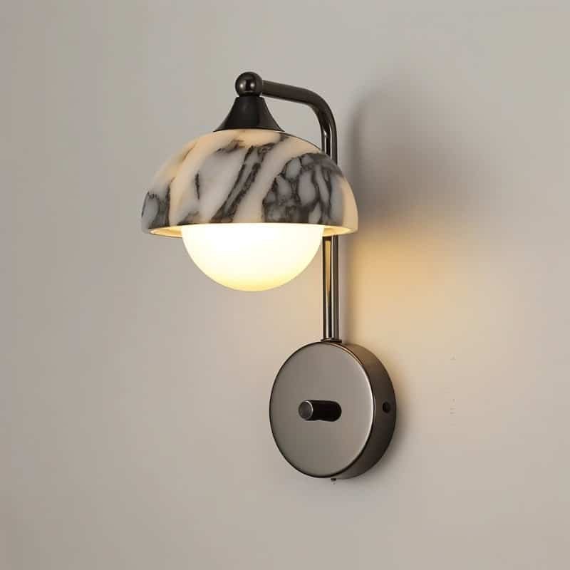 The Crickle wall lamp is a sophisticated light fixture that blends luxury and functionality. Designed with a sleek metal frame, a striking marble shade, and a durable plastic diffuser, it creates a refined contrast of textures. The curved arm supports the dome-shaped shade, allowing soft, diffused lighting to enhance bedrooms, hallways, and accent walls. This wall lamp is perfect for modern and classic interiors, adding an artistic touch while maintaining practicality.