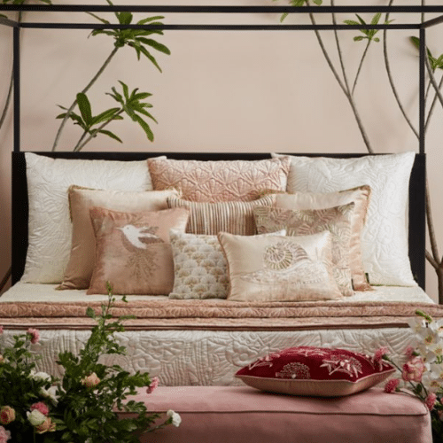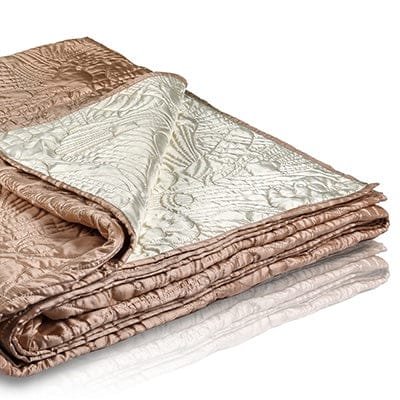 Add a luxurious layer to your interior with this irresistible creamy white faux silk bedspread, reversed to a beautiful blush velvety silk cosiness on the other side. With a contrasting embroidery on both sides, this elegant product offers exquisite warmth and texture like sleeping on a butterfly meadow. It’s made using a combination of skillful dying, engineered computer quilting and weaving techniques to ensure results of the highest quality.