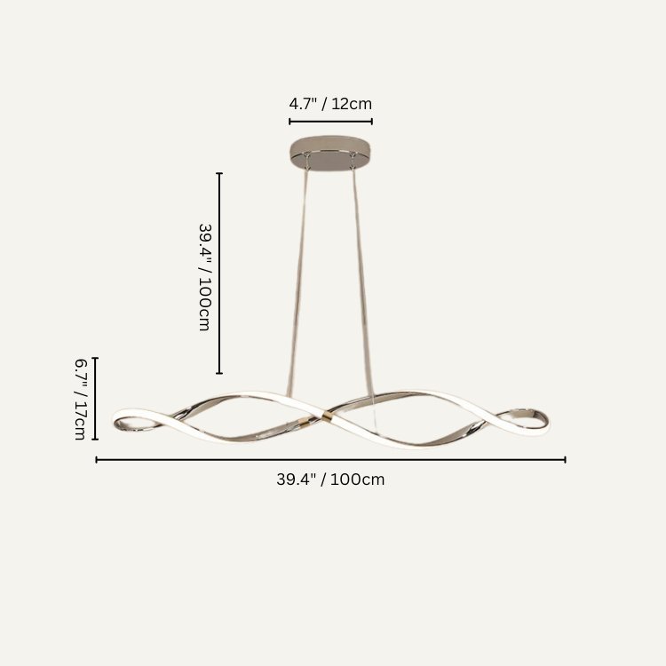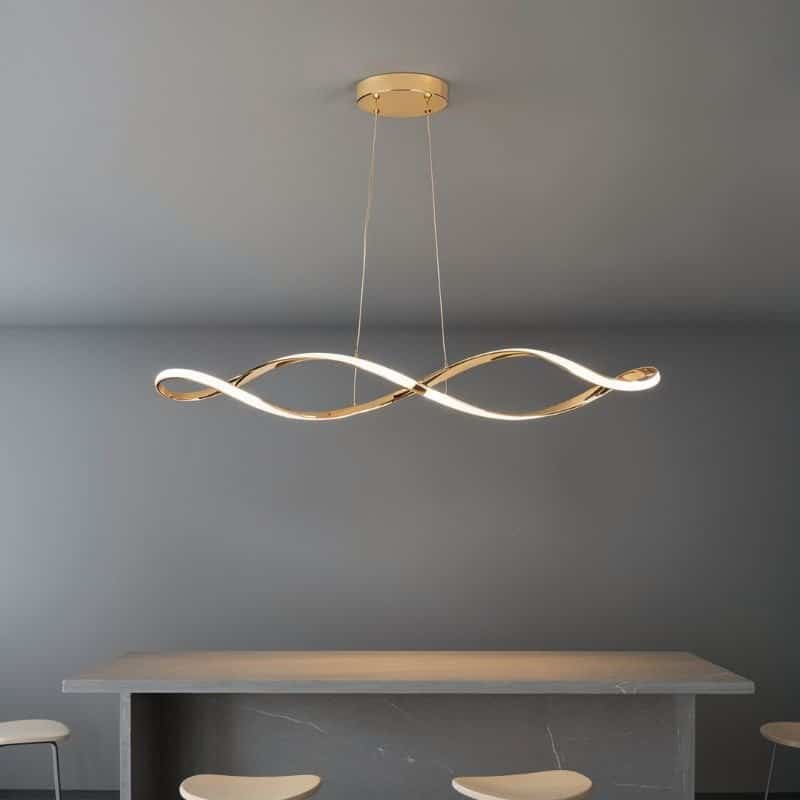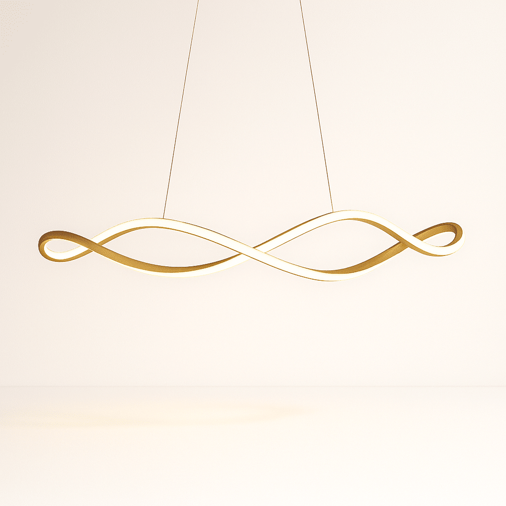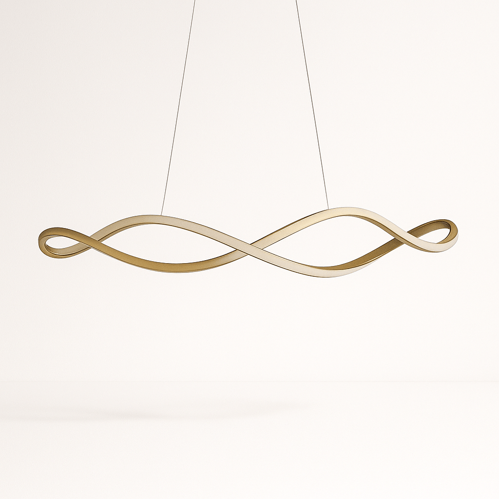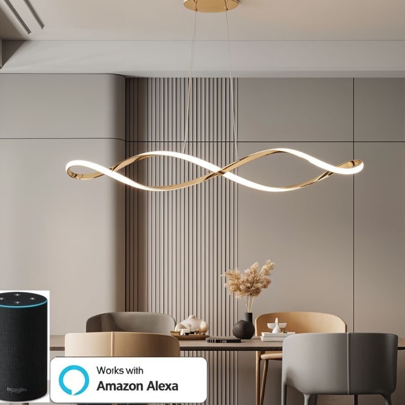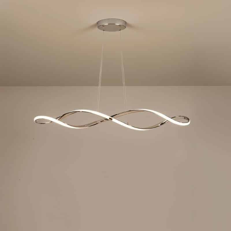 The Curlicue Chandelier would ideally accent any room. It comprises an aluminum and iron body with an acrylic diffuser and has a unique twisted design with an embedded LED module that illuminates through the form. The Curlicue is available in remote-controlled and Amazon Alexa-controlled versions, in polished chrome and gold finishes, giving your space an opulent sense that makes you enjoy walking in the atmosphere of the times appreciating its beauty and quality. Ideal for hotels and residential buildings.