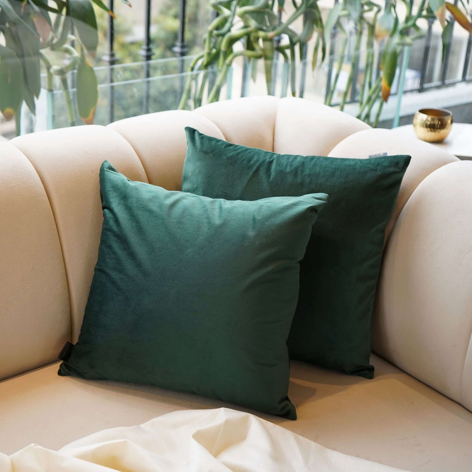 Velvet Cushion Cover in Emerald Gree, Set of 2, 16 x 16 inch