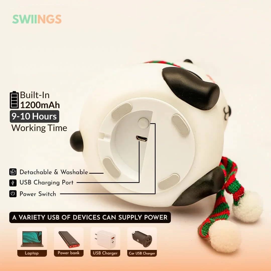 Panda Night Light – Long-Lasting and Convenient! With a built-in 1200mAh battery, enjoy 9-10 hours of glowing time.
