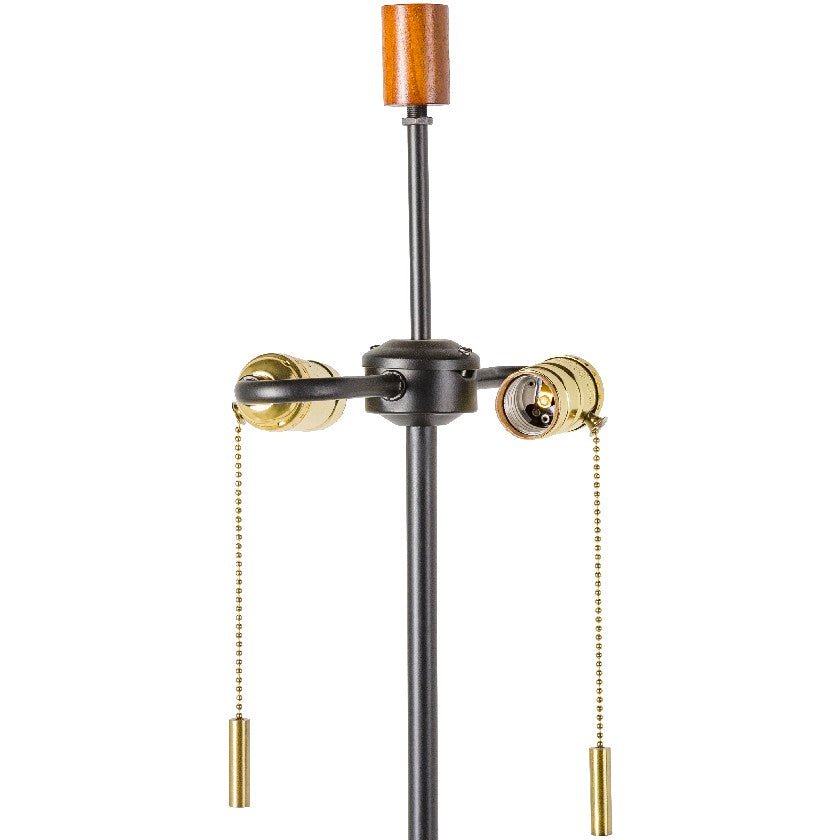 - Body: Wood; Base: Metal; Shade (Outside): Linen; Shade (Inside): Polyester; Finial: Wood