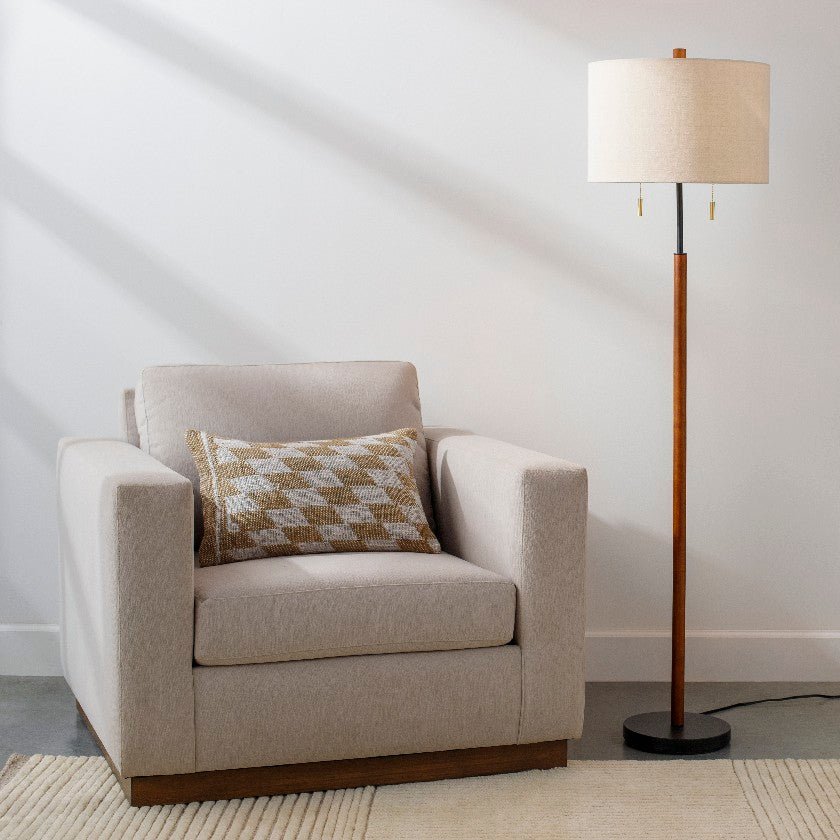 - Color: Body: Tan; Base: Black; Shade (Outside): Beige; Shade (Inside): White; Finial: Tan; Cord: Black