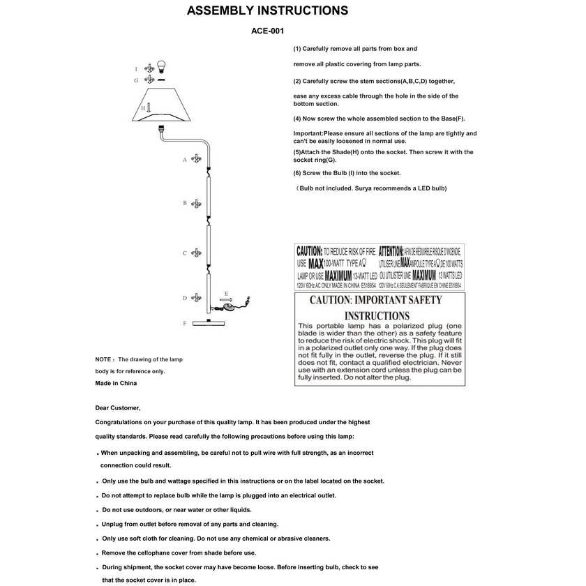 - Colors: Body: Metallic – Brass; Base: Metallic – Brass; Shade: White; Cord: Translucent