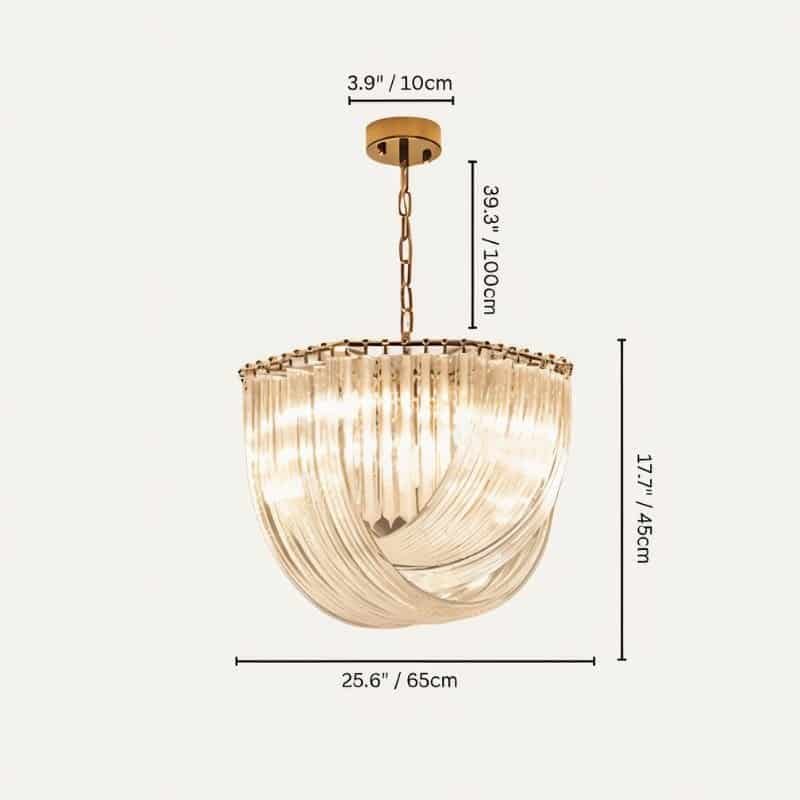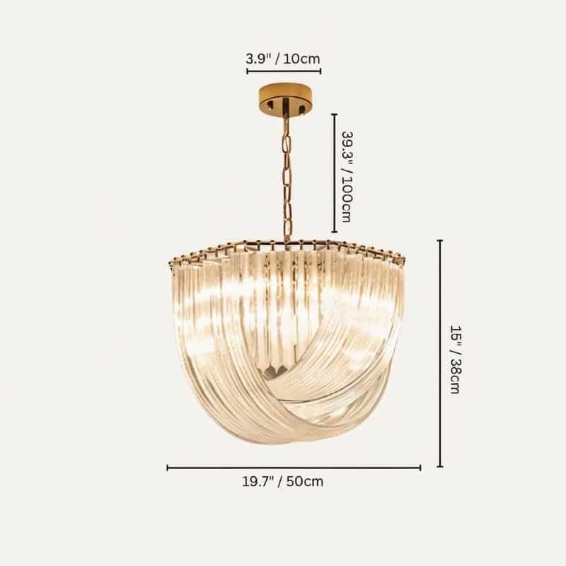 The breathtakingly magnificent Danica Chandelier epitomizes sophisticated luxury. A gold-plated frame supports an exquisitely detailed glass pendant that shimmers and refracts light in a lovely way that creates an enchanting lighting experience, turning this fixture into a truly spectacular statement piece that will make any room’s surroundings feel distinct and elevated. Danica harmonizes with the other pieces of furniture’s gold accents. It will serve as the focal point of your space and make a classy addition to any modern or transitional interior.