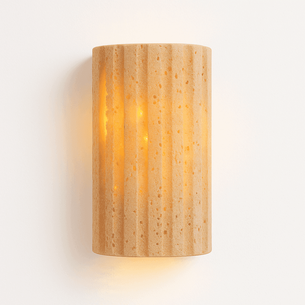 The Diuha wall lamp is a sophisticated light fixture crafted from premium travertine, showcasing a natural stone texture that adds elegance to any space. With a minimalist, rectangular design, this wall-mounted fixture offers a modern yet timeless appeal, blending seamlessly with various interior styles.