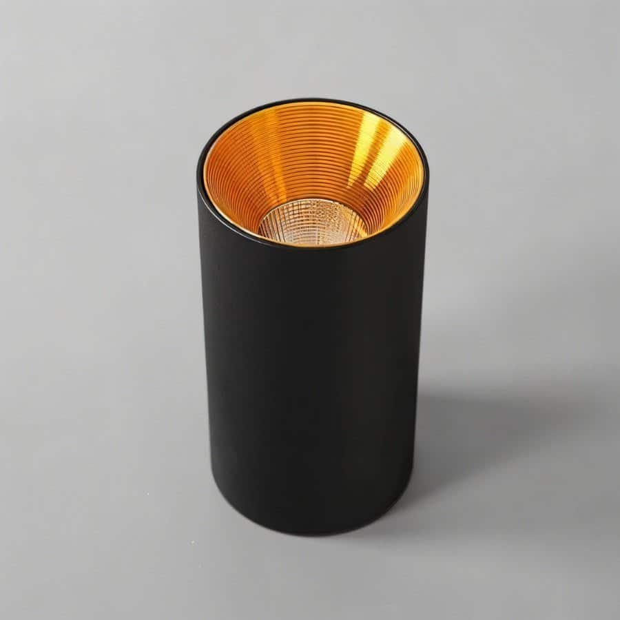 Dowan boasts an elegant cylindrical design with a gold reflector for a touch of sophistication.