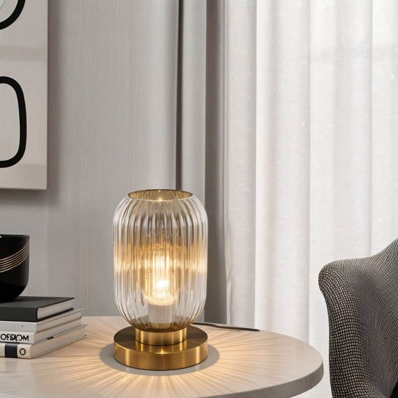 The Eclat Table Lamp will make your space more opulent and well-lit. It features a cylindrical lampshade created with ribbed glass that helps refract light in different directions and creates fascinating shadows in a room, as well as a metallic brass polished base that exudes a sleek and modern appeal. Eclat comes with lampshades in three gorgeous hues and is great for giving your living area or bedroom the perfect amount of charm.