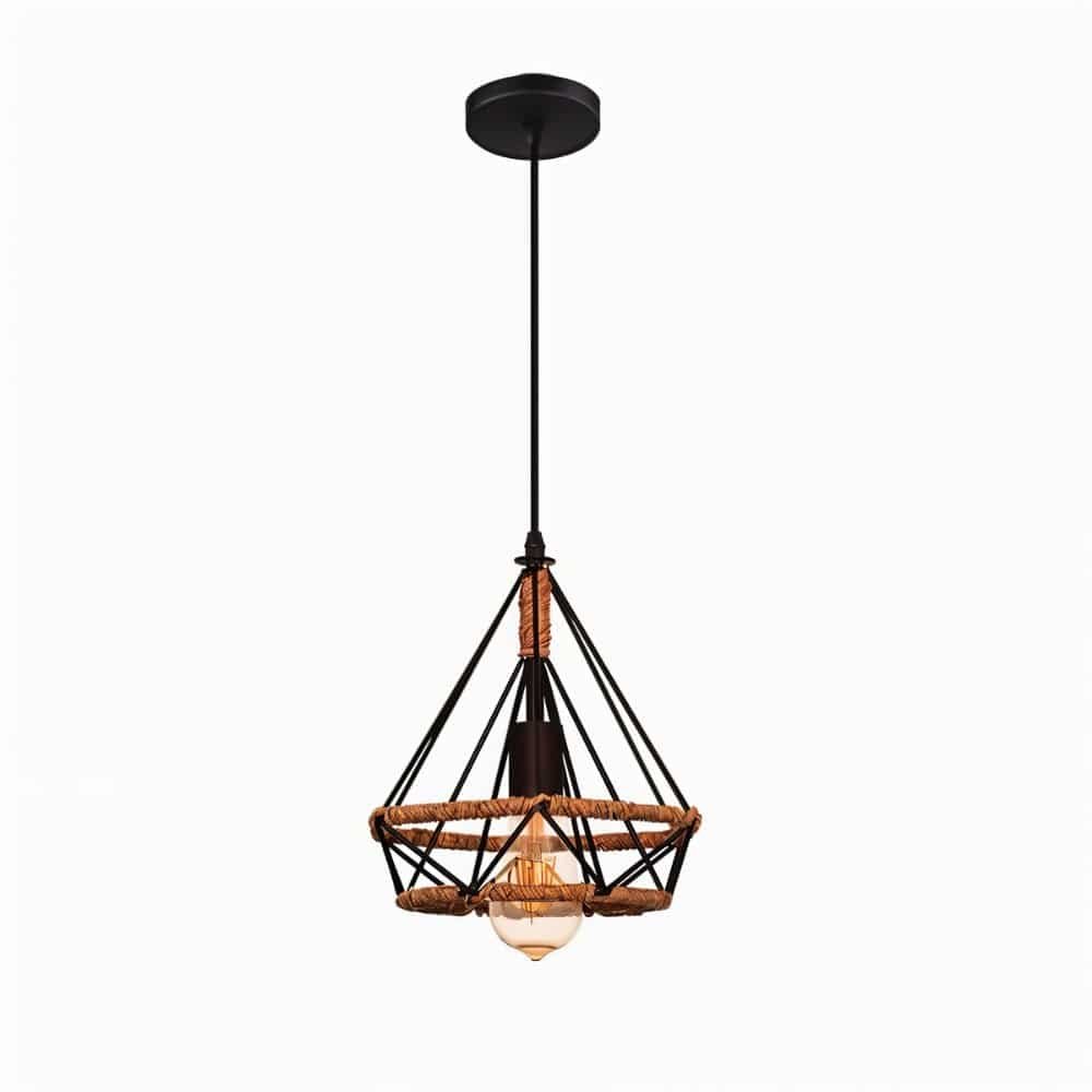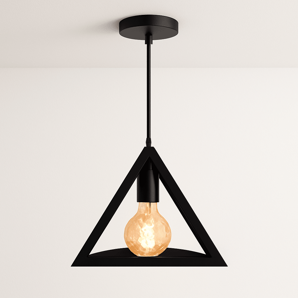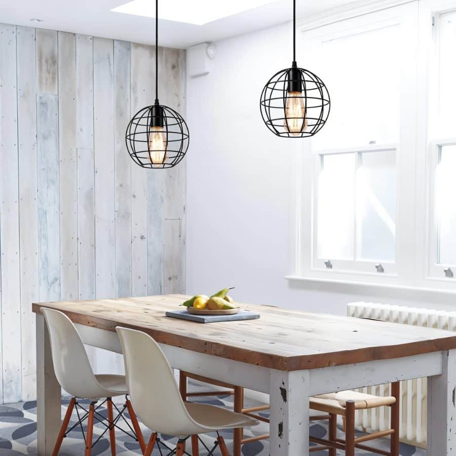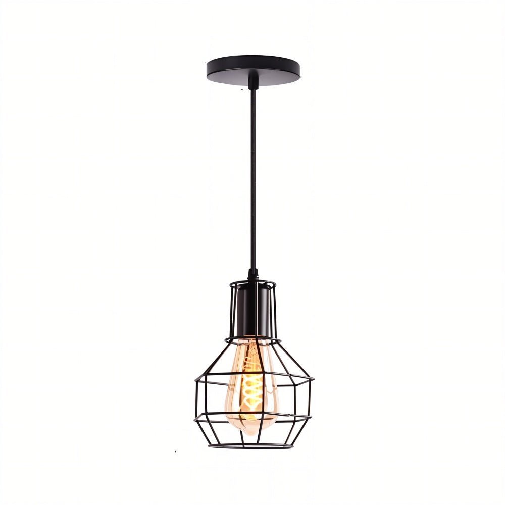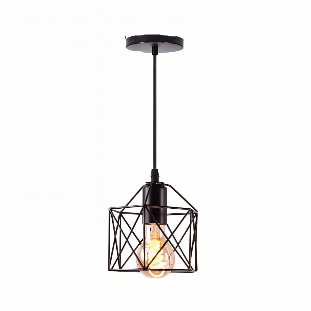 Edna has a sleek geometric metal caged pendant with soft lighting for a modern industrial look.