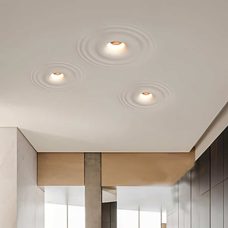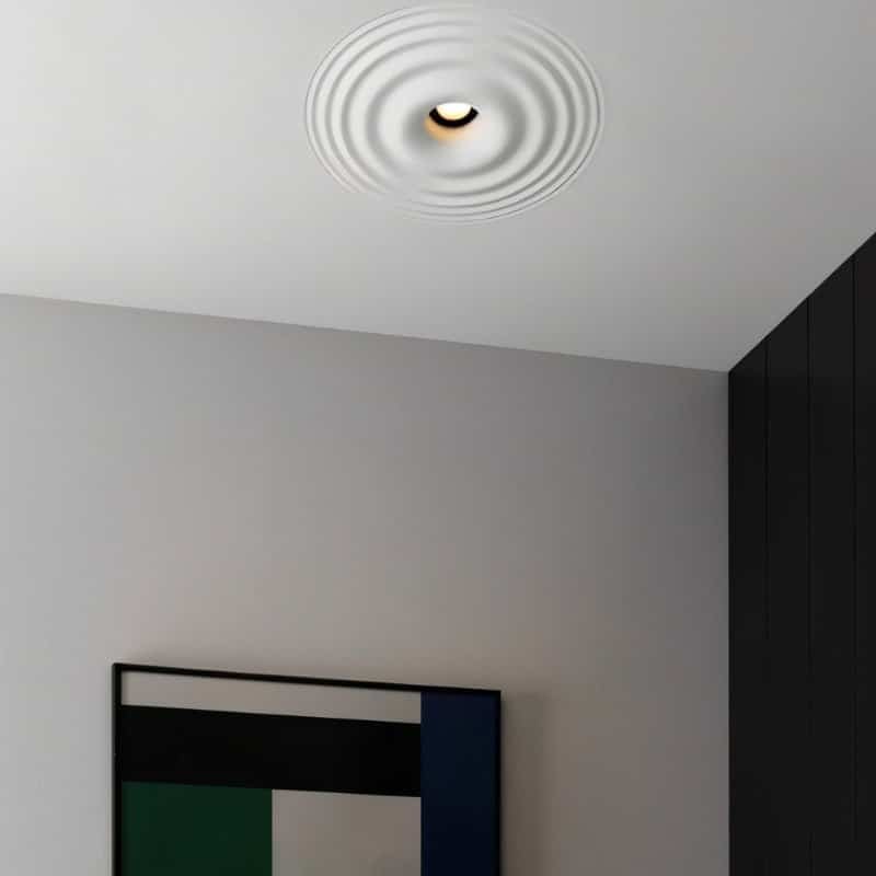 The Ehola Trimless Downlight showcases a sleek, modern design with concentric circles radiating from the central light source, creating a captivating ripple effect. Crafted from durable gypsum, this fixture is seamlessly embedded into walls or ceilings for a minimalist and flush appearance. The Ehola trimless light is ideal for adding a unique, architectural element to contemporary interiors, enhancing spaces with soft, focused illumination that draws attention without overpowering the decor.