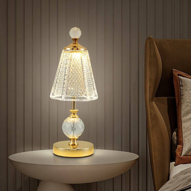 The Elouan Table Lamp is both beautiful and functional. With its intricately patterned acrylic that simulates glass crystal and magnificent matte metallic gold finished body this table lamp oozes elegance. The lamp’s built-in LEDs produce a soft, delicate glow that lends it an almost ethereal quality. This rechargeable lamp with practical touch sensor controls offers quick access to brightness and three light modes so you can easily change colors and ambiance as needed. Elouan will look fantastic on any desk or nightstand, but the bedside table is where it really shines.