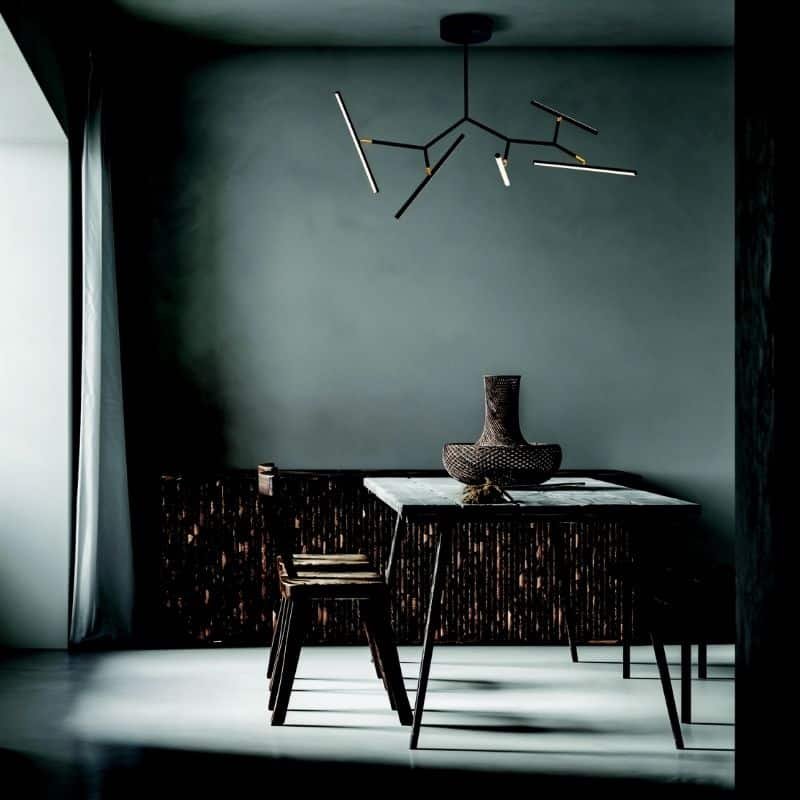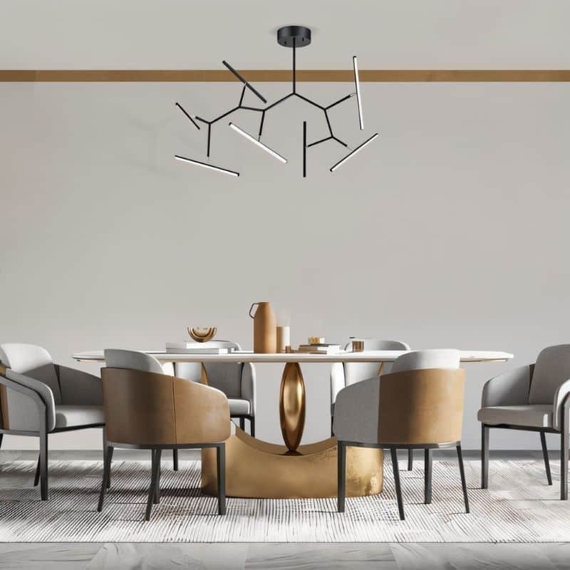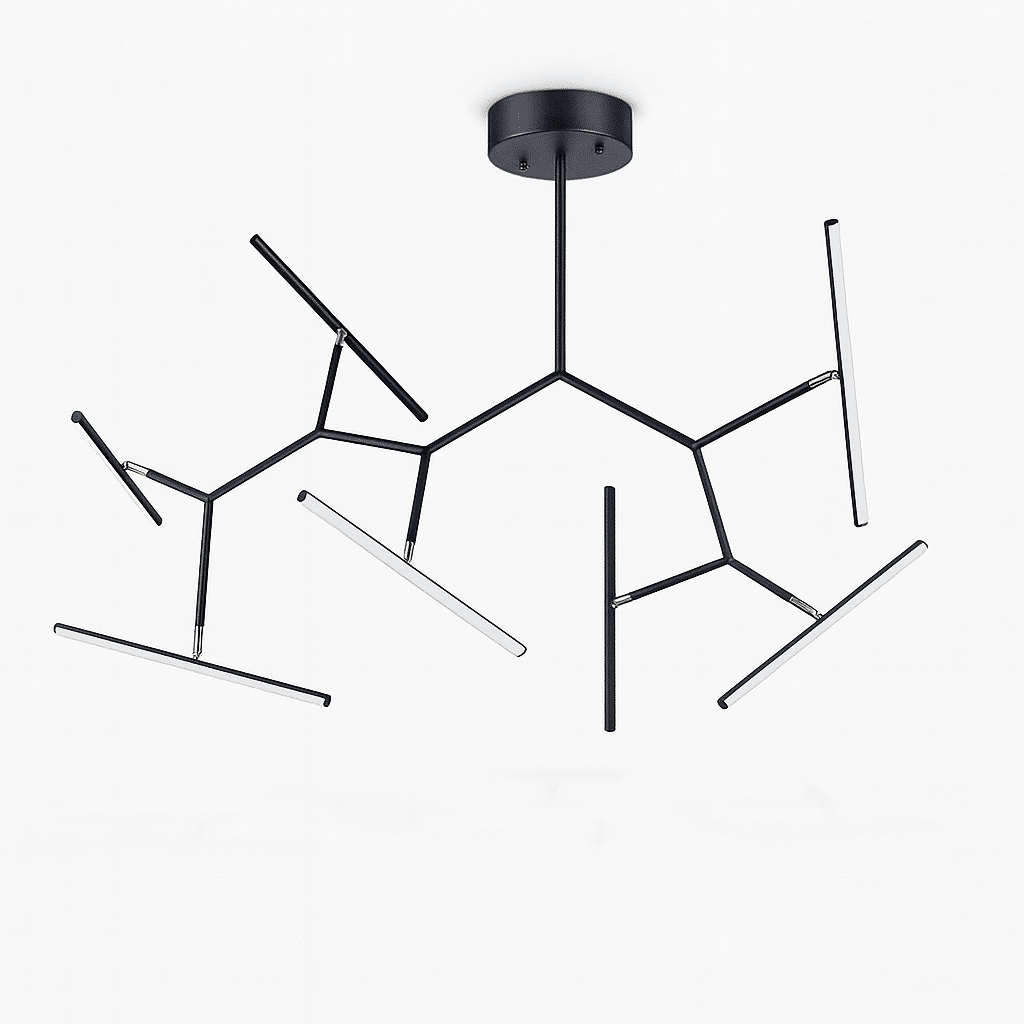 The Elyon Ceiling Light is a modern light fixture with a geometric, interconnected design crafted from durable aluminum and silicon. Its linear structure emits a soft, even glow, making it ideal for dining rooms, living spaces, or minimalist offices. Combining functionality with elegance, this fixture serves as both lighting and a statement piece. Its sleek black finish seamlessly complements contemporary interior styles.