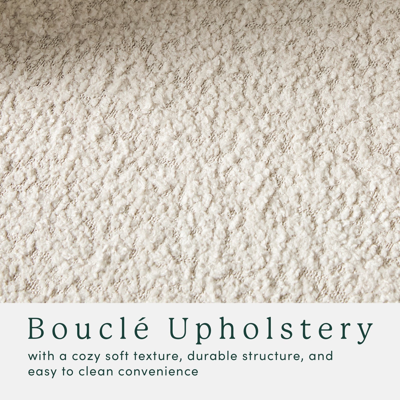 Cozy and sophisticated? Dreams do come true. The Modern Boucle Solid Wood Rounded Back Dining Chair gives you an elevated look and feel that is on par with the high-end designs you’ve seen all over Pinterest. It’s like a fancy, sculptural accent chair and your favorite oversized lounge chair all wrapped in one perfect package. The curved design and wrap-around armrests give you all the comfort you need for prolonged sitting, while the soft, textural boucle fabric is both inviting and effortlessly stylish. Made from solid rubberwood, this chair is built for everyday use. Whether you’re dining with friends, studying, working, or just scrolling on your laptop, this fully upholstered beauty has your back, both literally and figuratively.