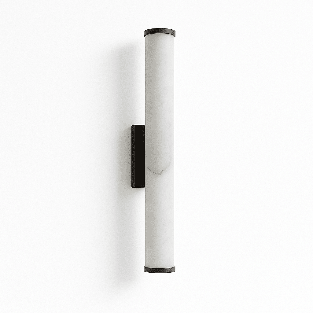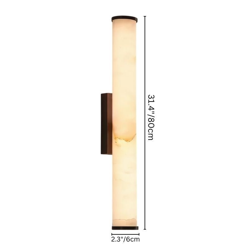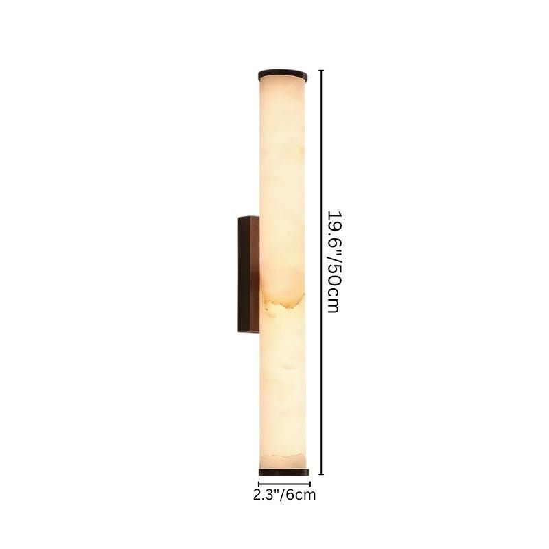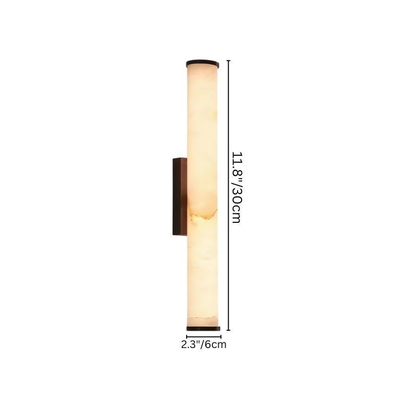 The Falynis Wall Lamp combines timeless elegance with modern functionality, designed with an elegant cylindrical alabaster shade and a solid brass base. The light fixture’s alabaster material diffuses a warm, ambient glow, creating a sophisticated yet calming atmosphere, perfect for enhancing any interior space. The brass mount adds durability and a refined aesthetic, making it suitable for contemporary or classic decor styles. This versatile light fixture can be installed in hallways, living rooms, and bedrooms.
