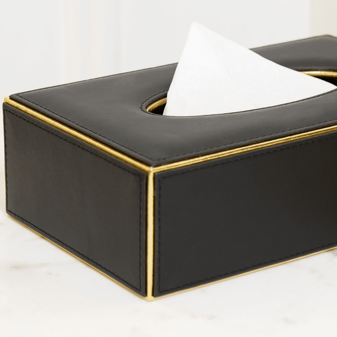 Faux Leather Tissue Box, Black