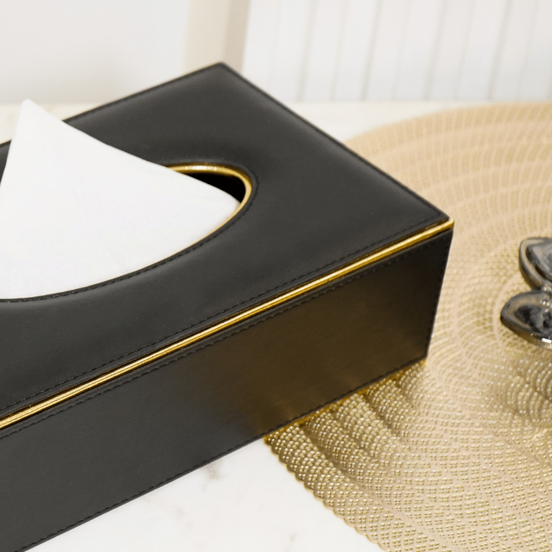Faux Leather Tissue Box, Gold