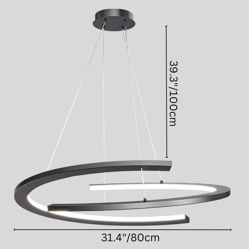 The Fiona Chandelier is a modern light fixture made from aluminum and iron, featuring asymmetrical, layered rings that create a floating effect. Its sleek cables suspend the design, diffusing warm LED illumination for a striking visual impact. Ideal for living rooms, dining areas, and open spaces, it enhances modern, industrial, and minimalist interiors. The bold geometric structure makes it a standout focal point in contemporary settings.