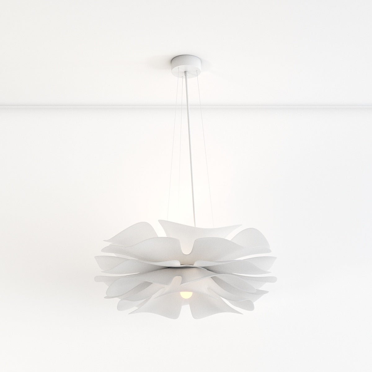 With a magnificent white acrylic lampshade that is exquisitely curved to resemble a blooming flower, the Fleur Chandelier will complement your space. It features a lovely contemporary style and has an enchanting appearance due to its wavy structure. The soft diffused glow that the LED bulbs produce creates the perfect atmosphere and makes the Fleur stand out in a bedroom, entryway, or dining room in a modern or transitional-style setting.