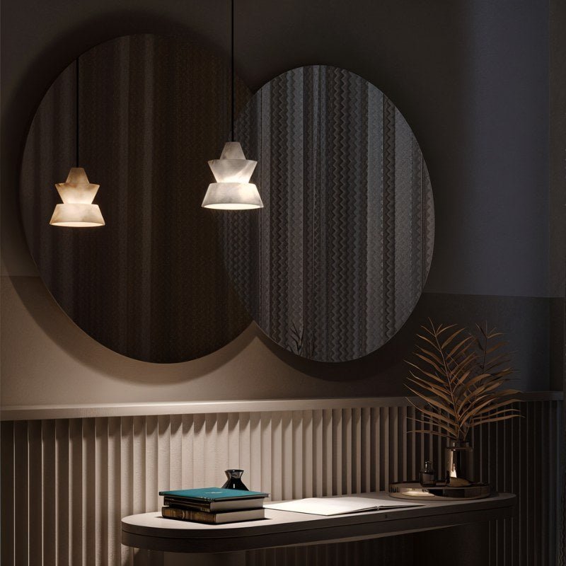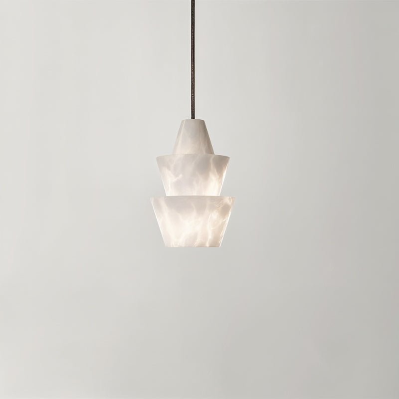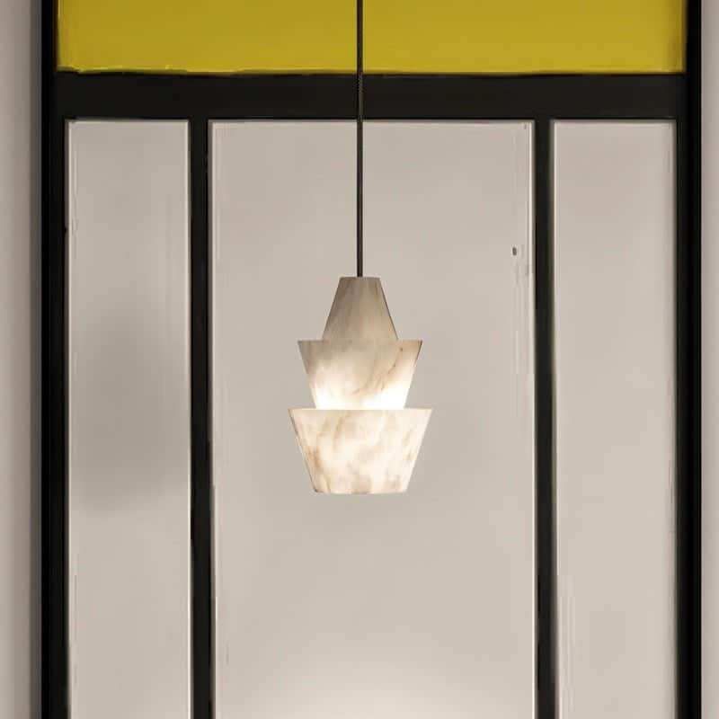 It is carefully designed for modern elegance, drawing inspiration from ancient motifs. Its curved form adds a unique touch, while the alabaster material diffuses a soft, warm glow. This luminaire combines artistic design with practical lighting, bringing sophistication to your space.