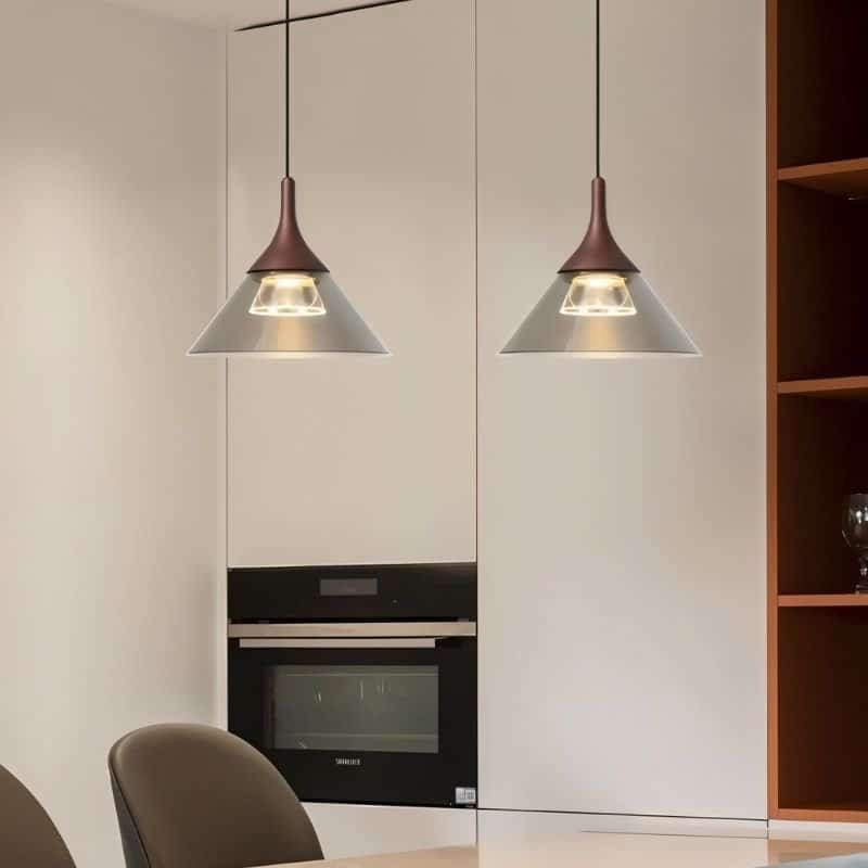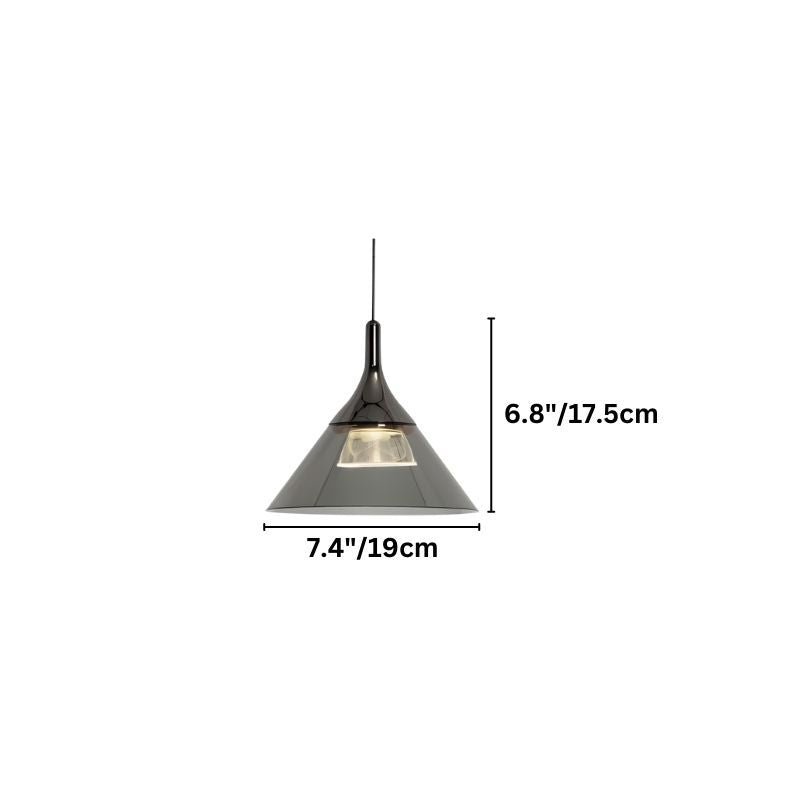 The Fluvic Pendant Light features a sleek aluminum top with a smooth transition into a clear acrylic and glass shade, creating a sharp yet balanced aesthetic. Its conical shape directs light efficiently, making it ideal for dining areas, bedrooms, or modern workspaces. The layered glass design enhances illumination while maintaining a refined look. Available in six colors, this versatile light fixture adapts to various interiors, adding a contemporary touch. Designed for both ambient and task lighting, it complements minimalist and modern settings.