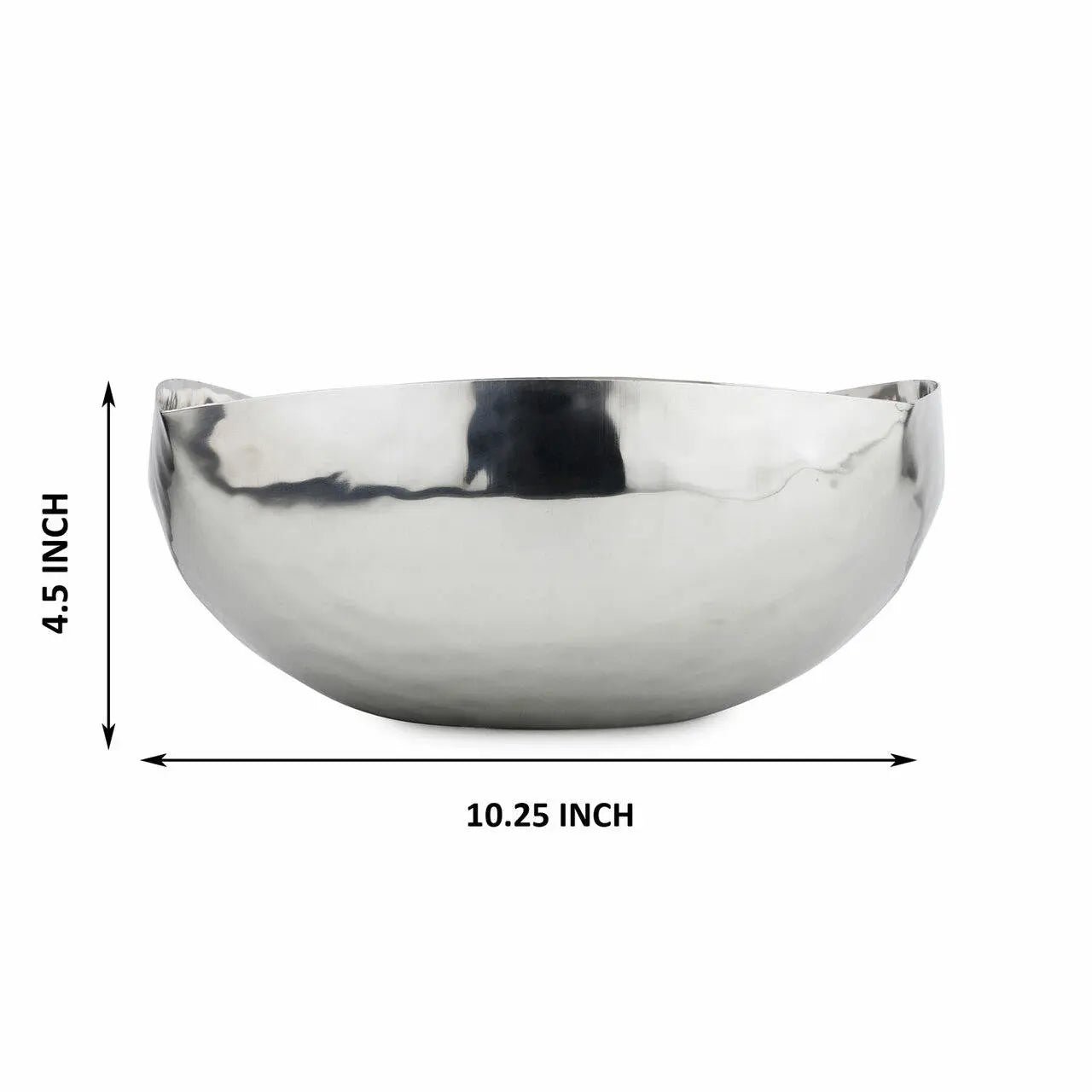 Defined by its hammered texture and organic shape, our Full Polished Stainless Steel 11” Salad Bowl is both elegant and practical. Made for those who love simplicity, this polished stainless steel bowl brings a fresh modern aesthetic to your kitchen countertop or table setting.