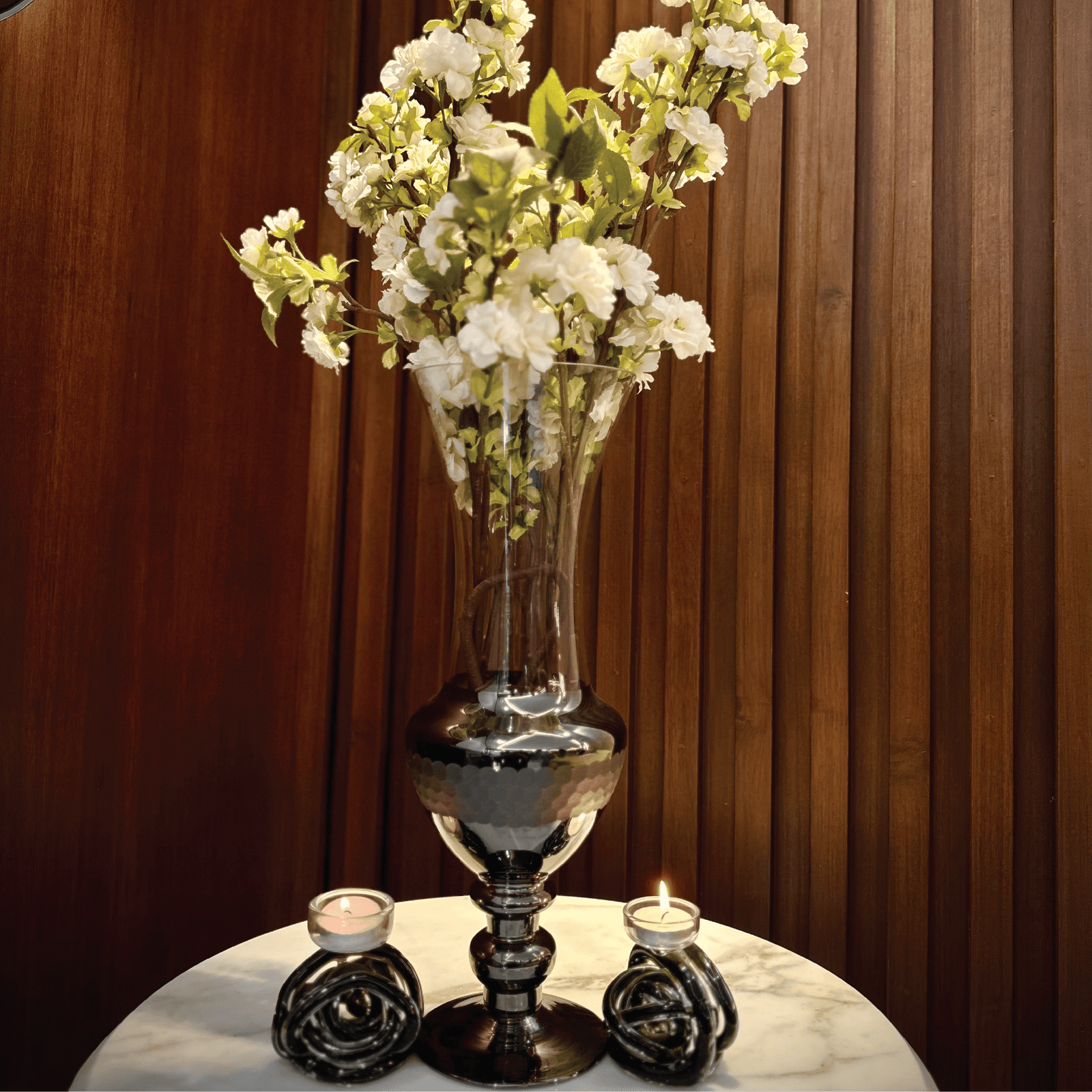 Gold and Ivory Fluted Ceramic Urn with Lid, Big